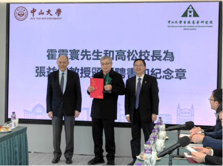 2026 年 1 月 8 日下午,中山大學霍英東基金會講席教授張益唐先生授予儀式在香港科學園中山大學香港高等研究院舉行。儀式由中山大學香港高等研究院院長徐安龍教授主持,中山大學校長高松院士、副校長鄭躍教授,霍英東基金會董事霍震寰先生,以及香港特別行政區政府勞工及福利局副局長何啟明先生等各界領導嘉賓出席儀式。